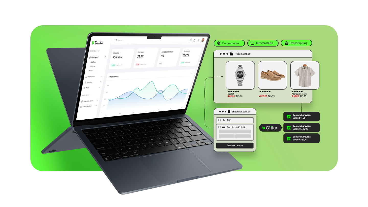 Venda mais, receba melhor. Clika: o gateway feito para quem empreende no digital.
