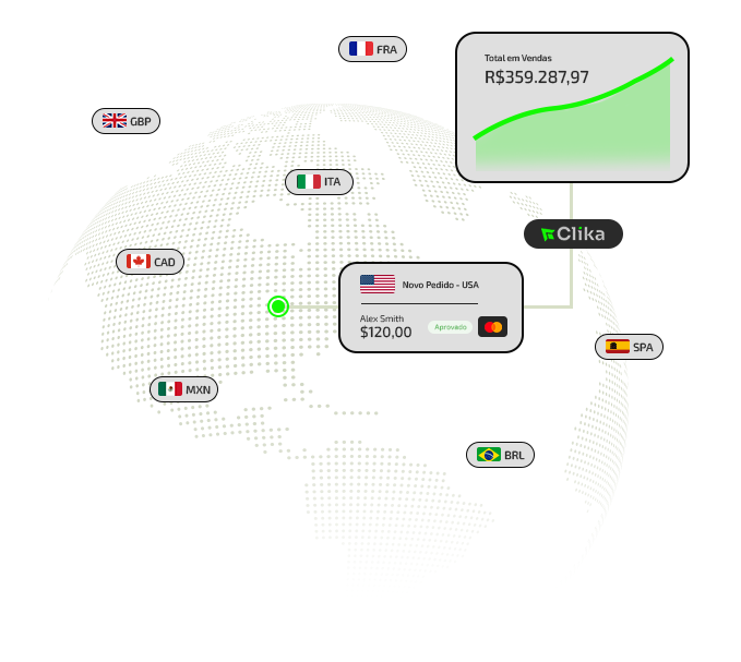 A Clika é o gateway de pagamentos feito para empreendedores digitais e empresas que vendem online: alta aprovação, taxas justas, repasse garantido e aceitação em múltiplas moedas (R$, USD, EUR, GBP).Quem vende com Clika não caminha sozinho. Tem suporte, tem consultoria, tem reconhecimento. Além disso você expande seu negócio para o mercado Global.